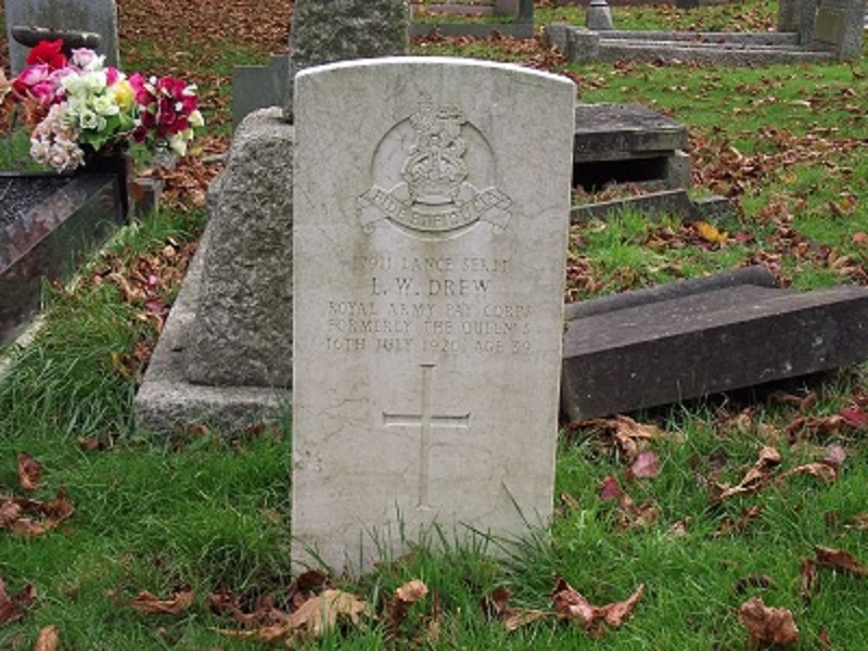 Son of Mr. D. F. Drew, and of Lady Haldon; husband of Bertha Mary Lavinia Drew, of 27, St. Mary’s Terrace, Paddington, London. http://www.cwgc.org/find-war-dead/casualty/388947/DREW,%20L%20W
